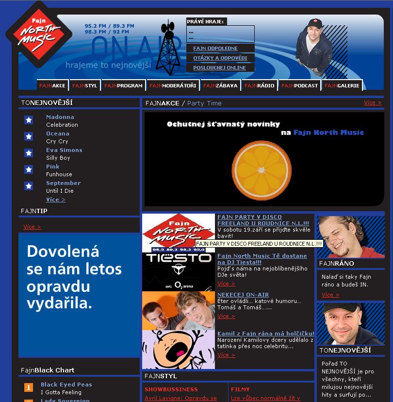 Nový web, web Fajn Rádia North a starý design stránek www.fajnradio.cz. Pro zvětšení klikněte myší.