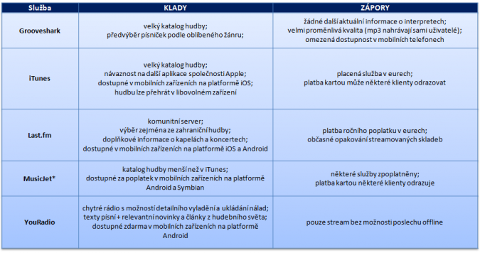 * informace o službě MusicJet jsou dostupné na základě slovenské verze