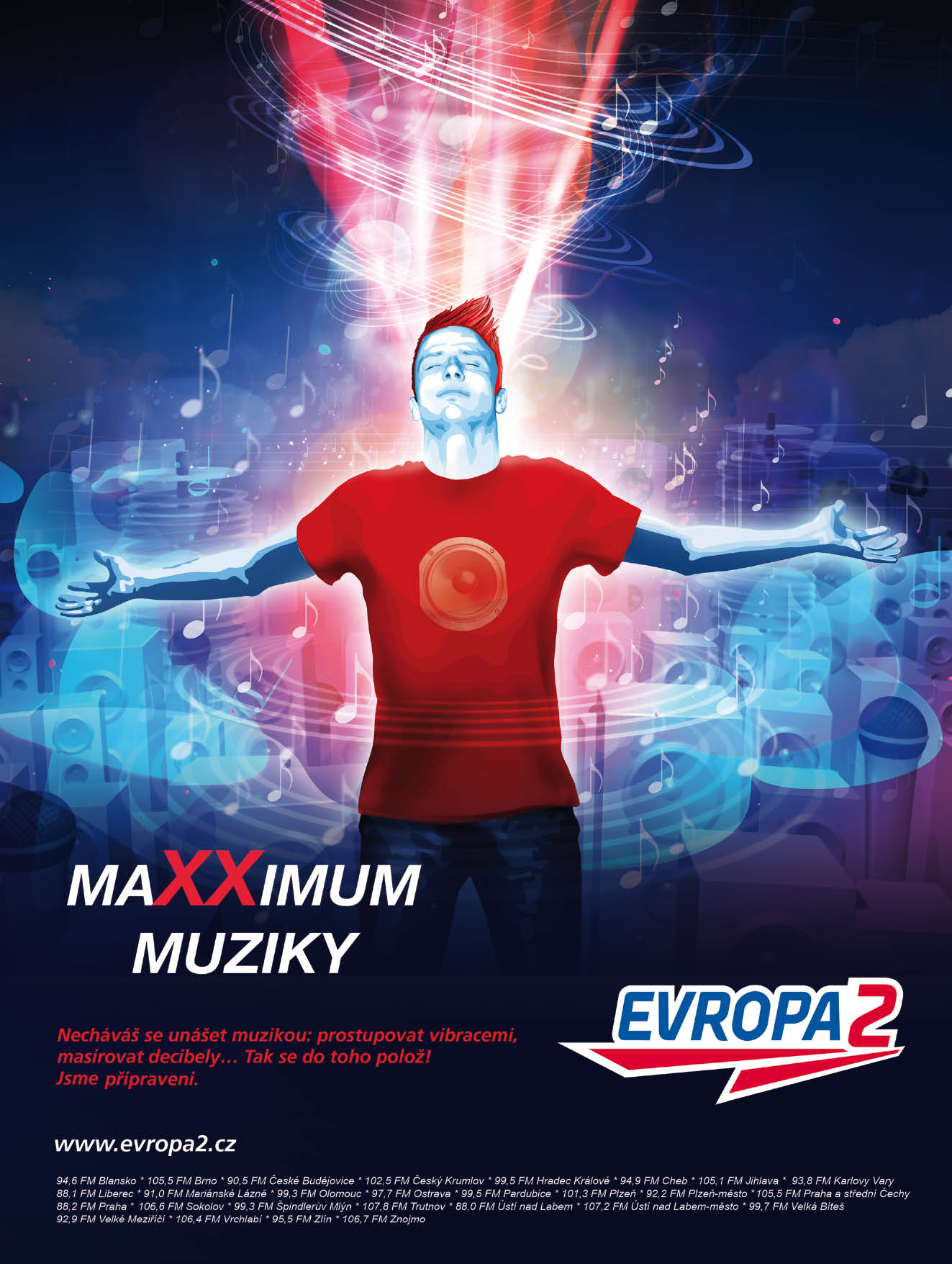 Pro tisk využije Evropa 2 již dříve použitý vizuál s motivem Kluka ve víru muziky, který připravila agentura TBWA. Ten se objeví v tisku i jako outdoor a indoor. Ve vozech metra budou využity standardní reklamní plochy.
