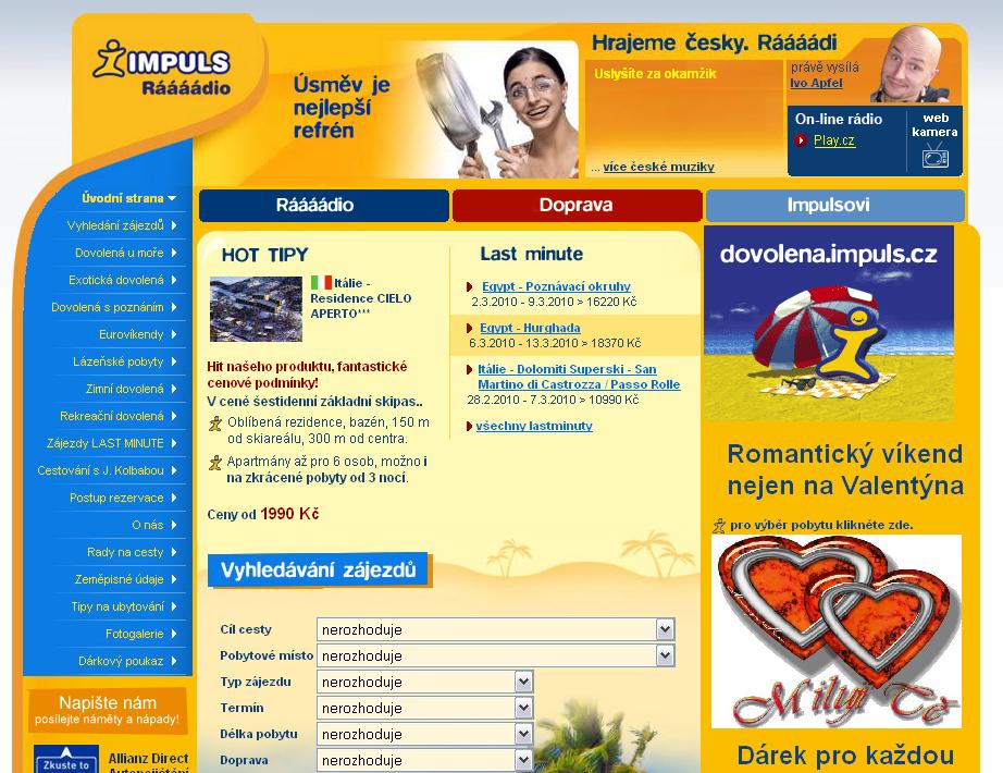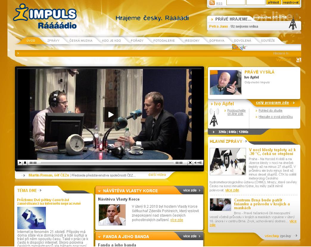 Návštěvníci webu www.impuls.cz od včerejšího dne mohou využívat další možnosti a zhlédnout jeho novou podobu. Předchozí design byl spuštěn v druhé polovině prosince roku 2006, hlavní novinkou portálu byl (kromě vylepšeného designu) playlist českých písniček dané hodiny.