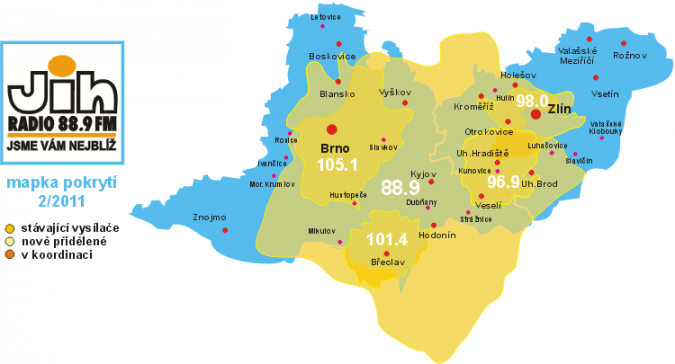 jih_mapaUherskohradišťský vysílač Rádia Jih byl uveden do provozu, zdejší obyvatelé naladí program rádia s heslem „Jsme vám nejblíž„.