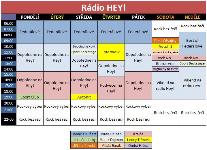 PROGRAM A AUDIO UVNITŘ – Zaří přineslo na vlny rockového Rádia Hey! několik novinek, kromě nové kolegyně došlo k několika úpravám zejména ve víkendovém proudu.