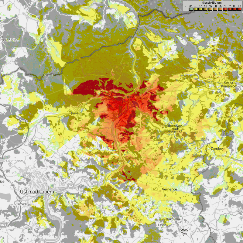 Radiomobile – Mapka Děčín – Letná (200 W). Zdroj: DXRadio.cz/JIDXC