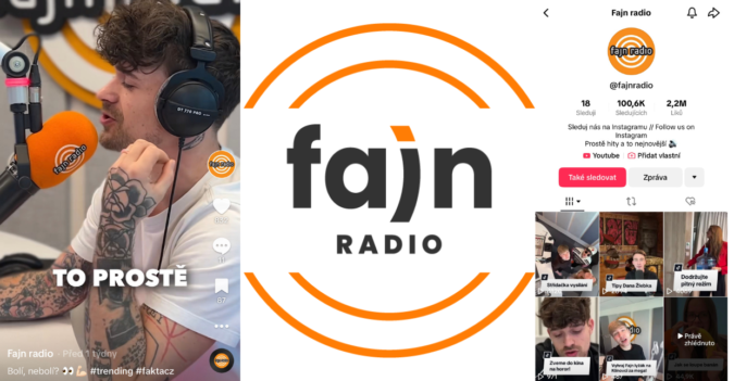 Fajn rádio patřící do mediální skupiny Media Bohemia si dlouhodobě buduje pozici jediného českého rádia cílícího na opravdu mladé posluchače. A to se stanici opravdu daří, protože aktuálně pokořila na sociální síti TikTok hranici 100K followerů a je tak nejoblíbenějším českým rádiem na této sociální síti.