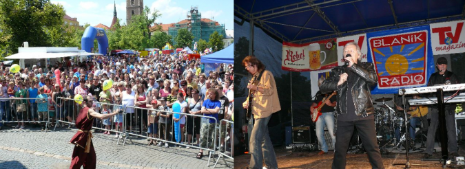 Bohatý doprovodný program, koncertní vystoupení zpěváků známých z vysílání – letní Slavnosti Rádia Blaník.