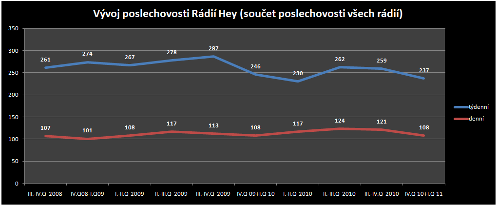 hey_tydenniVývoj týdenní poslechovosti rádií Hey!. Pro zvětšení klikněte myší.