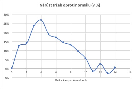 • Nejvyšších nárůstů tržeb dosahujeme 3. a 4. den kampaně.
