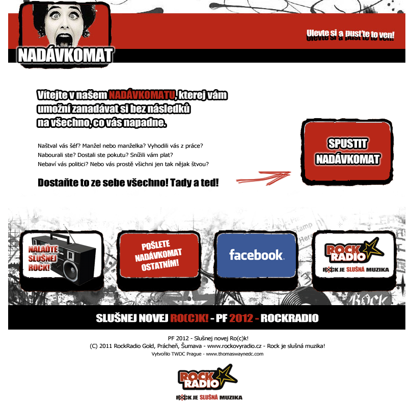 „Moc si přejete, aby byl příští rok mnohem slušnější než ten uplynulý? Snadná pomoc!“ Alespoň ji slibují Rock Rádia. Na webových stránkách www.rockovyradio.cz je k dispozici internetová aplikace „Nadávkomat„, cílem je umožnit posluchačům uvolnit napětí a stres, který u mnohých z nás vzniká s příchodem konce roku.