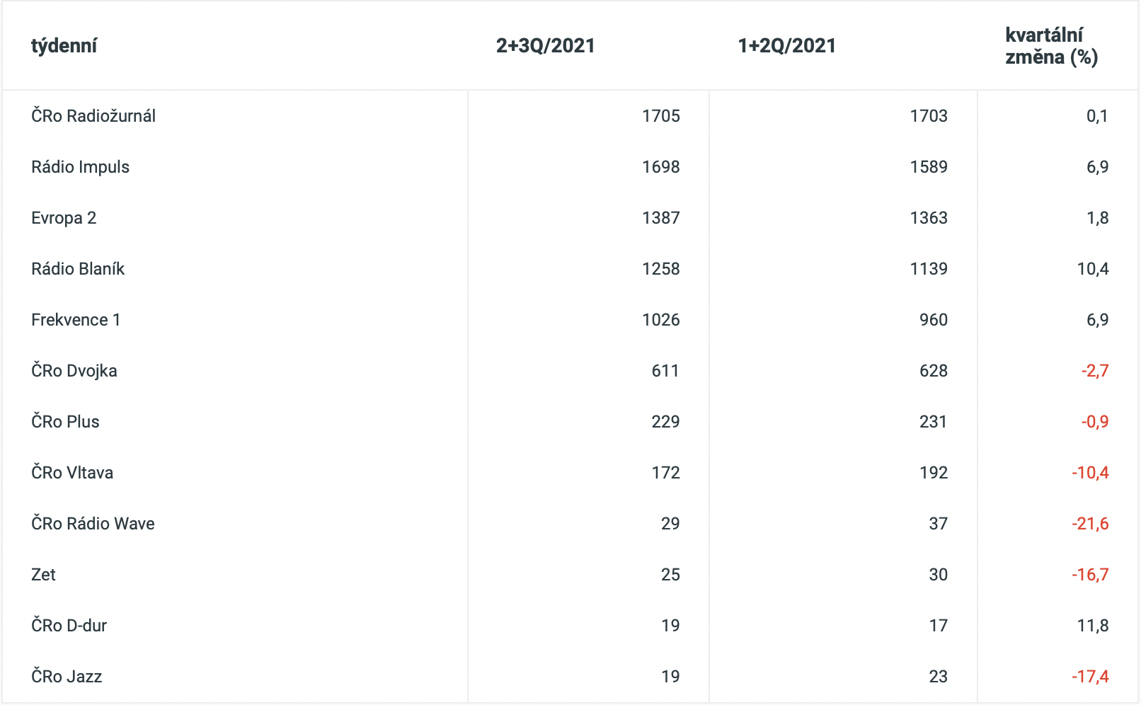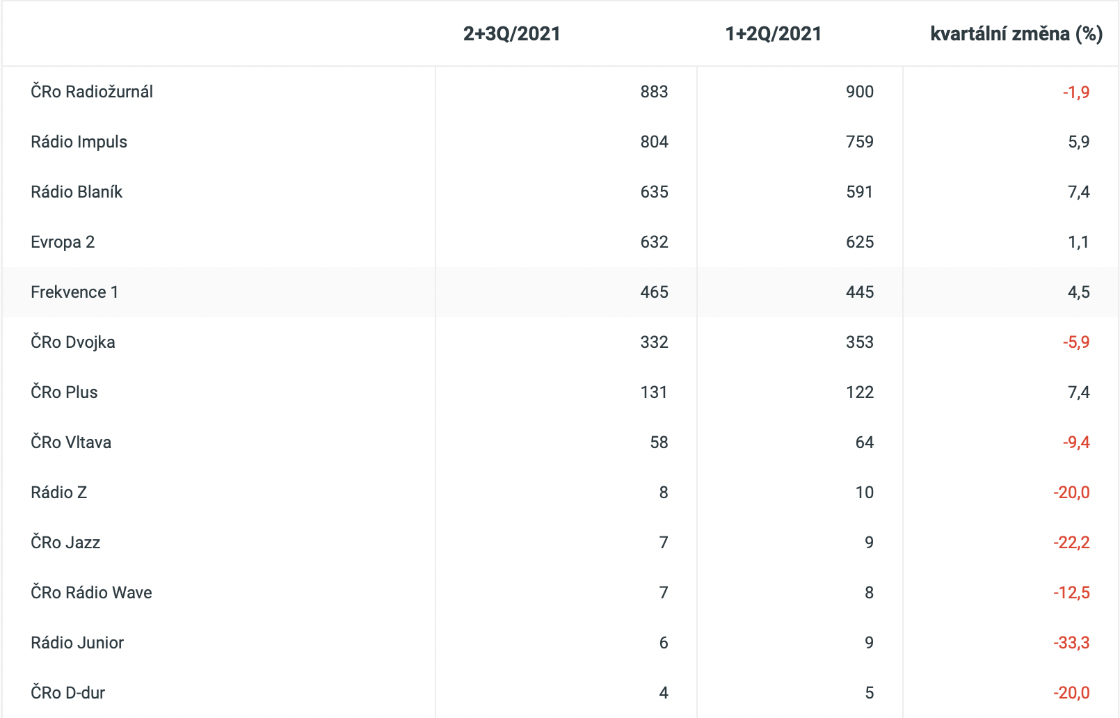 Historicky poprvé se Rádio BLANÍK umístilo na třetím místě v denní poslechovosti. A v podílu na trhu ztrácí pouhou jednu desetinu procenta na druhé místo (Rádio Impuls).