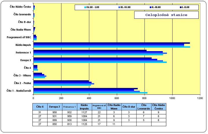 Mezi celoplošnými stanicemi se i nadále nejlépe daří rádiu Impuls, denně si toto rádio naladí až 1,127 milionu posluchačů, což je ve srovnáním s minulým výstupem více o 43 tisíc, v meziročním srovnání se jedná o pokles 16 tisíc. Druhé místo si překvapivě získala stanice pro mladé Evropa 2 s 958 tisíci, oproti minulé vlně posílila o 27 tisíc a předhonila sesterskou Frekvenci 1 (932 / -27). Dále boduje první okruh Českého rozhlasu – Radiožurnál (819 / +55). V meziročním srovnání si významně polepšila Evropa 2 (+138) před Frekvencí 1 (+135) a Radiožurnálem (+110). Další stanice klesaly – ČRo 2 Praha (413 / -23), ČRo 3 Vltava (82 / -10) a Rádio Wave (3 / -3).