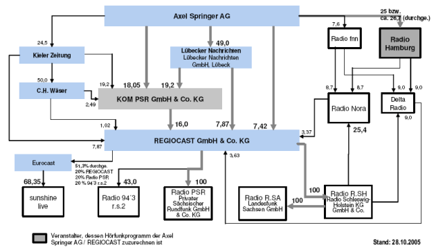 Společnosti Regiocast a Eurocast jsou vlastnicky a personálně propojeny a úzce spolupracují. Další Springerovy aktivity na německém rozhlasovém trhu jsou popsány ve Výroční zprávě nebo zde.