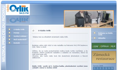 Před necelými dvěma měsíci začalo na Táborsku vysílat nové lokální Rádio Orlík. Na svědomí ho má bývalý majitel benešovského Rádia Presston Josef Zoch. Jeho současný projekt se měl původně jmenovat Rádio Paráda, ještě před spuštěním vysílání změnil název. Nové rádio vysílá na frekvenci 94.5 MHz, povolený výzářený výkon je 200 wattů, vysílací stanoviště je situováno do Sezimova Ústí.