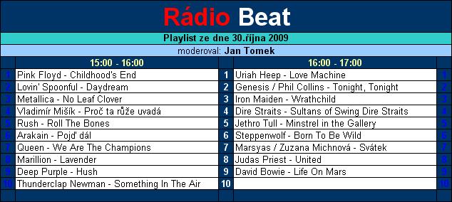 Rádio Beat; pátek 30.října 2009; 15:00 – 17:00