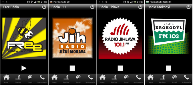 Aplikace pro systém Android byly představeny v polovině května. Na své si mají přijít jak posluchači tanečního brněnského Free rádio 107 FM, ale také dalších regionálních rádií – jedná se o Rádio Jih, Rádio Jihlava a Rádio Krokodýl. Co nová aplikace umožňuje? Kromě samotného poslechu se posluchači jedním klikem dostanou k Facebooku, mailu či možnosti spojit se se studiem telefonicky.