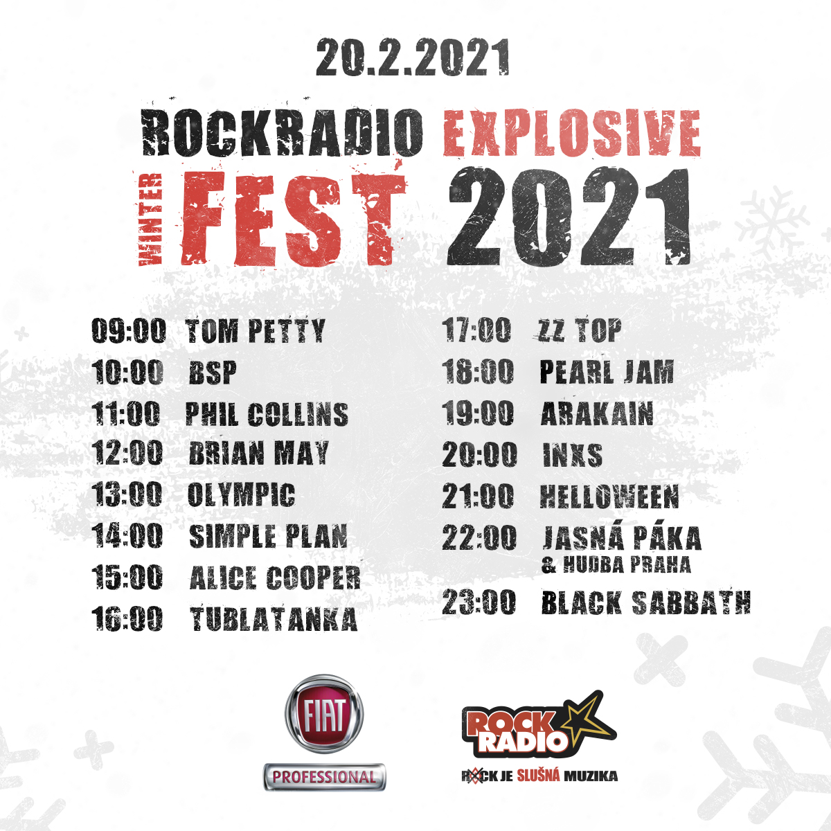 Rock Radio zveřejnilo lineup Explosive Winter Festu 2021, který se uskuteční na všech frekvencích Rock Radia už 20. února. Populární Explosive Summer fest, který posluchači dobře z vysílání znají, tak opět dostal svojí zimní verzi. Bude sice jednodenní, ale ani tentokrát nebudou chybět ty největší rockové kapely. Partnerem Explosive Winter Festu 2021 je Fiat Professional.