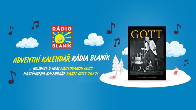 Rádio BLANÍK v předvánočním čase láká svoje posluchače větou: ,,Pojďte si s námi otevřít každé všední ráno jedno hudební okénko, vždy od pondělí do pátku krátce po sedmé hodině, možná tu na vás čeká krásný dárek. “ Adventní výhrou je velký nástěnný kalendář na rok 2022 plný nádherných fotek Karla Gotta z omezené limitované edice, kterou vydalo vydavatelství Naše vojsko a k tomu ještě CD „ČESKÉ PÍSNIČKY, KTERÉ MÁTE RÁDI“. Více informací o vánoční soutěži je zde.