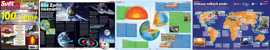 Časopis Svět Speciál najdete na stáncích pod názvem „100x neobyčejná Země – záhady a zázraky planety„. Po „vesmírném“ speciálu (červenec 2009) a „historickém“ speciálu (prosinec 2009) shrnuje novinka nejzajímavější články, které byly publikovány o změnách klimatu, ničivých katastrofách a světových záhadách. Na 140 stranách se dočtete více například o tom, co se stane, „Když Země plive oheň„, přečíst si můžete o „20 největších pouštích světa„, o ničivých hurikánech nebo důkazech globálního oteplování.
