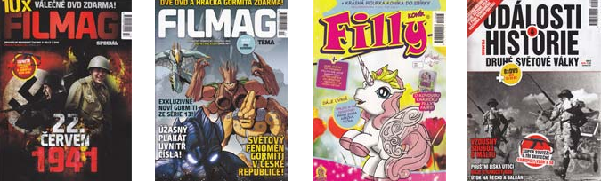 Jak už jsme slíbili v úvodu, rádi bychom vás seznámili s dalšími tituly vydavatelství Řitka video. Filmag Speciál je opět dvouměsíčník, čtenáři jej zakoupí za cenu 76 Kč a kromě magazínu s válečnou tématikou získají čtenáři až 10 DVD titulů. Filmag Filly je určen „malým princeznám„, časopis nabízí hry, soutěže a omalovánky. Nedílnou součástí jsou sběratelské figurky.