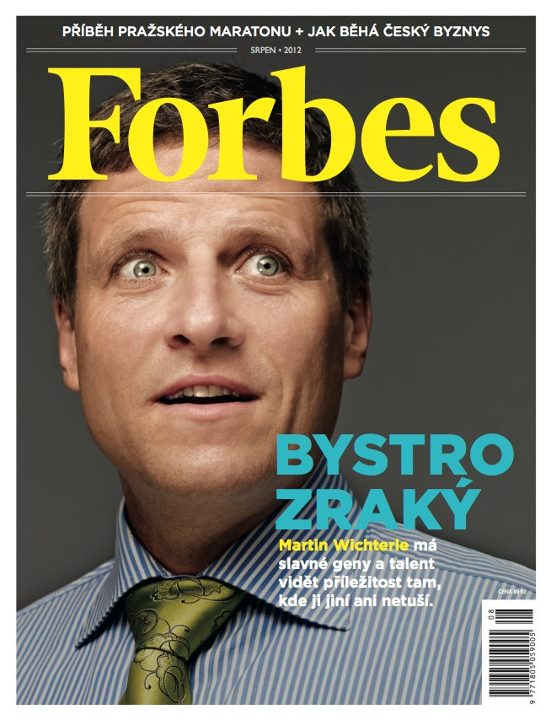 Srpnové číslo měsíčníku Forbes má na titulní stránce Martina Wichterleho, potomka slavného vynálezce kontaktních čoček. Mezi dalšími tématy bude například „Příběh pražského maratonu“ či „Jak běhá český byznys„. Zářijové číslo bude v prodeji už od 31. července 2012. Doplňme, že české vydávání časopisu Forbes začalo v České republice loni v listopadu, společnost tiskne 20 tisíc výtisků. Celkem má titul 2 645 předplatitelů, ve volném prodeji projevuje zájem téměř 6 tisíc lidí, tzv. ostatní prodeje (rozdávané za nižší cenu) činí 2 tisíce.