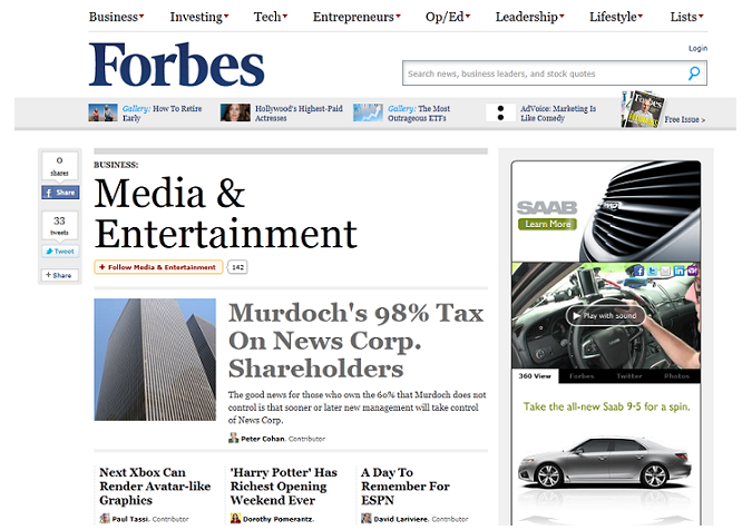 Od listopadu 2011 začne vycházet česká mutace světoznámého magazínu Forbes, s měsíční periodicitou jej uvede Forbes Media. Obsah magazínu vytvoří ze 60 procent původní zprávy z českého byznysu a ekonomiky, chybět nemají ani analýzy a komentáře. Zbylých 40 procent plánuje redakce překládat z amerického originálu.