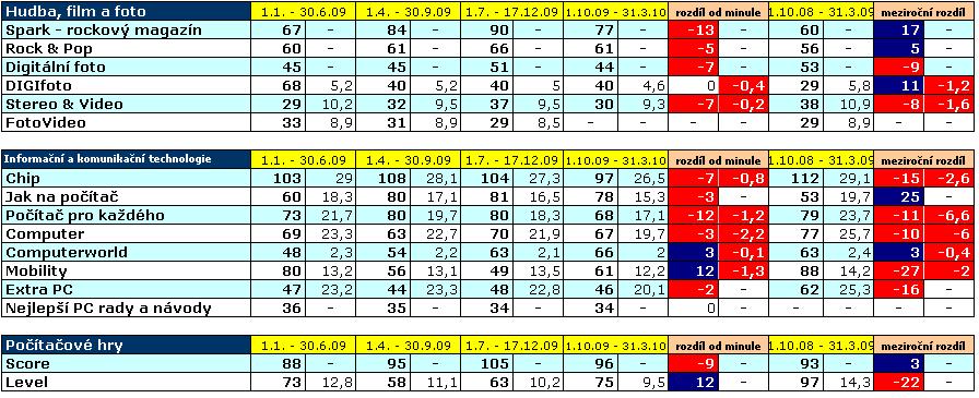 Ač rockový magazín Spark od minule spadnul o 13 tisíc na 77 tisíc, ve srovnání se stejným obdobím loňského roku jej čte o 17 tisíc více. V meziročním porovnání si polepšil také titul DIGIfoto, teď jej čte 40 tisíc, meziročně má navíc 11 tisíc.