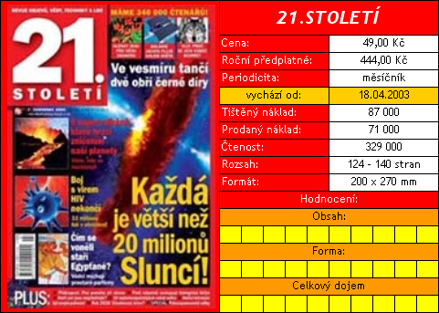 21.STOLETÍ – webové stránky, vychází od 18.dubna 2003