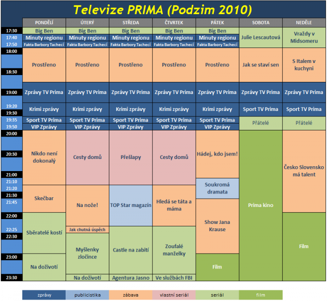 Hlavním tahákem podzimní sezóny televize Prima je prozatím federální projekt Česko Slovensko má talent, zatím poslední díl zhlédlo na obrazovkách TV Prima 1,041 milionu diváků při podílu 26,2 %, v cílové skupině 15-54 let si tento pořad podle webu tn.cz vybralo 618 tisíc diváků při share 27,6 %. Konkurenční Talentmania (TV Nova) získala 1,126 milionu (podíl na trhu 28,5%), v cílové skupině 15-54 let potom shodně 618 tisíc diváků (share 27,6%).