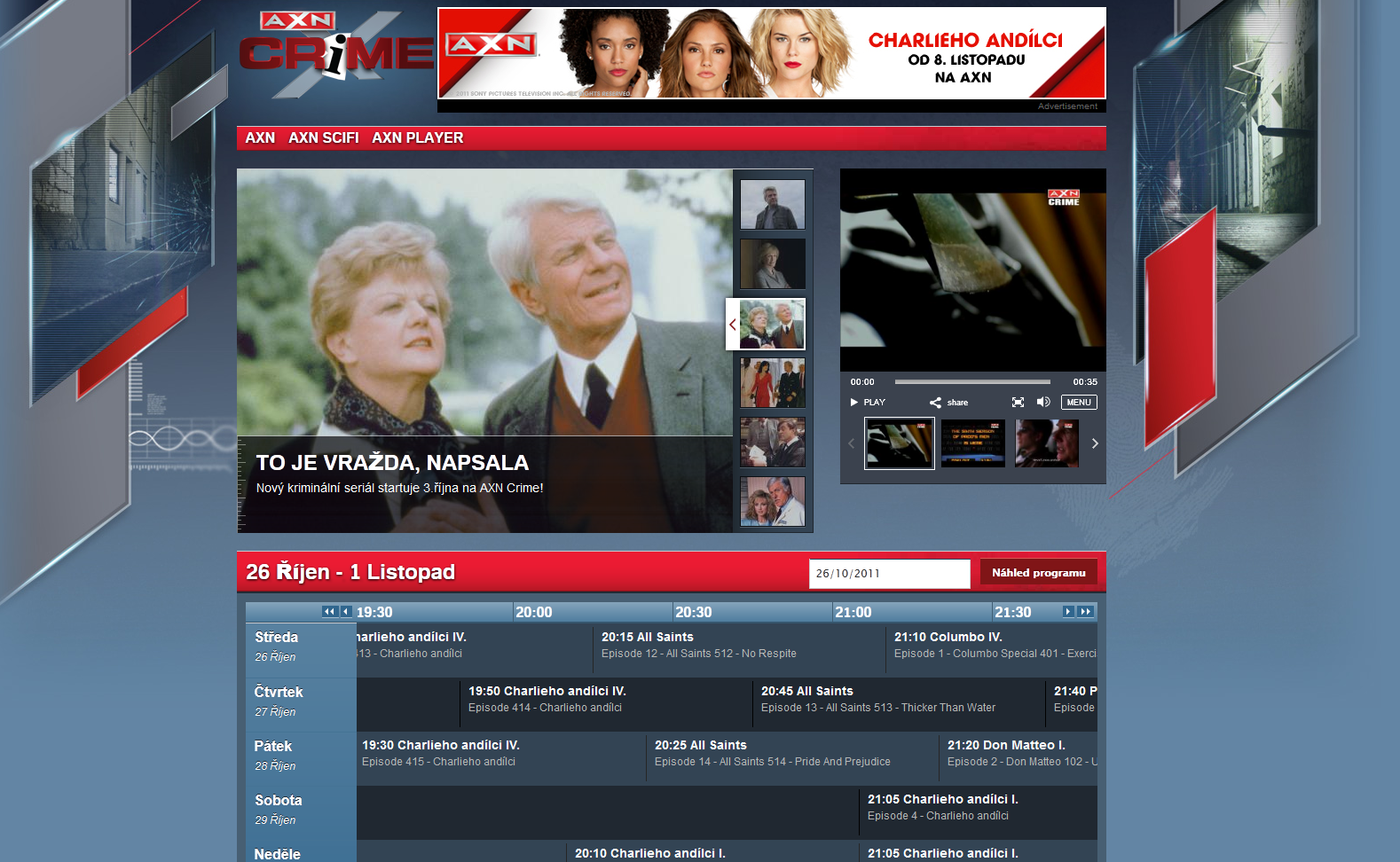Tematický kanál AXN Crime, který provozuje společnost Sony Pictures Entertaiment, se tento týden představil se zcela novou on-air grafikou, ale taktéž inovovaným logem. Stanice se specializuje na kriminální pořady, seriály a filmy. Dostupná je kromě České republiky taktéž na Slovensku, Bulharsku, Maďarsku, Polsku a Rumunsku. Mimo grafiky spustila zbrusu nové webové stránky. Mateřská stanice AXN uvede mimo jiné novou adaptaci seriálu Charlieho andílci.