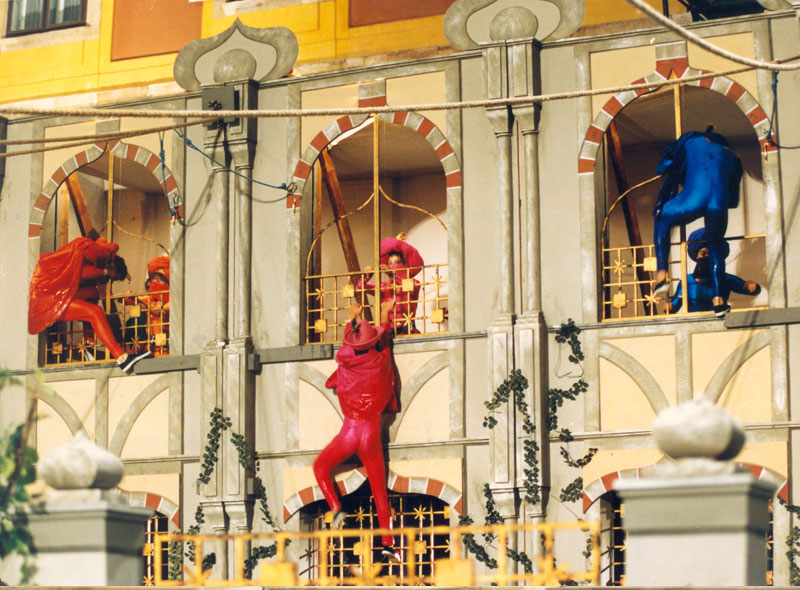 Roztodivné kostýmy patří k Hrám bez hranic neodmyslitelně. Na snímku čeští bojovníci. Zdroj: Archiv České televize.