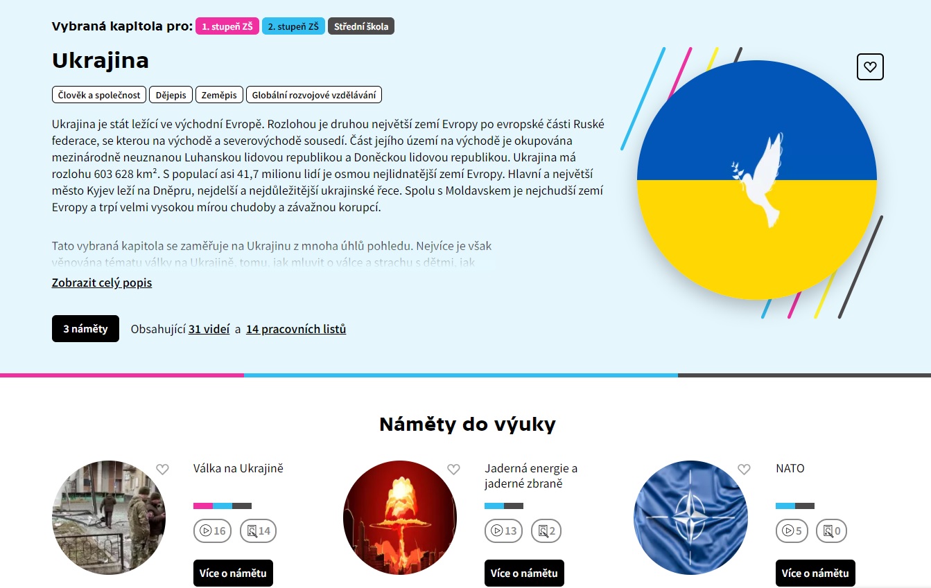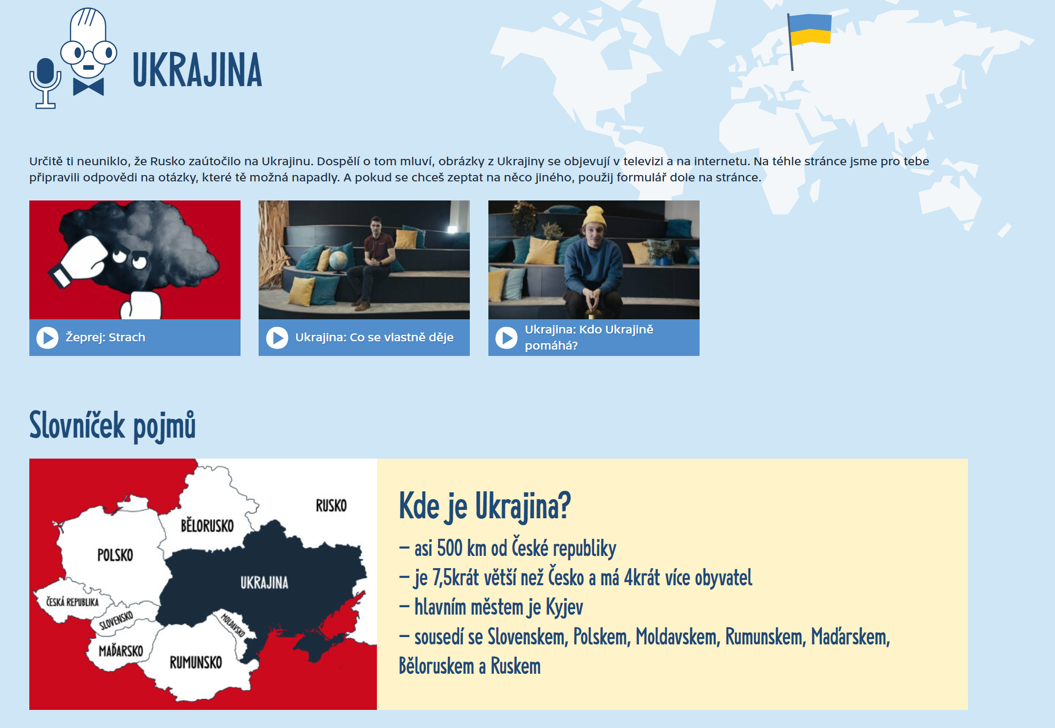 Na vzdělávacím portálu České televize ČT edu byla spuštěna sekce: https://edu.ceskatelevize.cz/vybrane-kapitoly/ukrajina