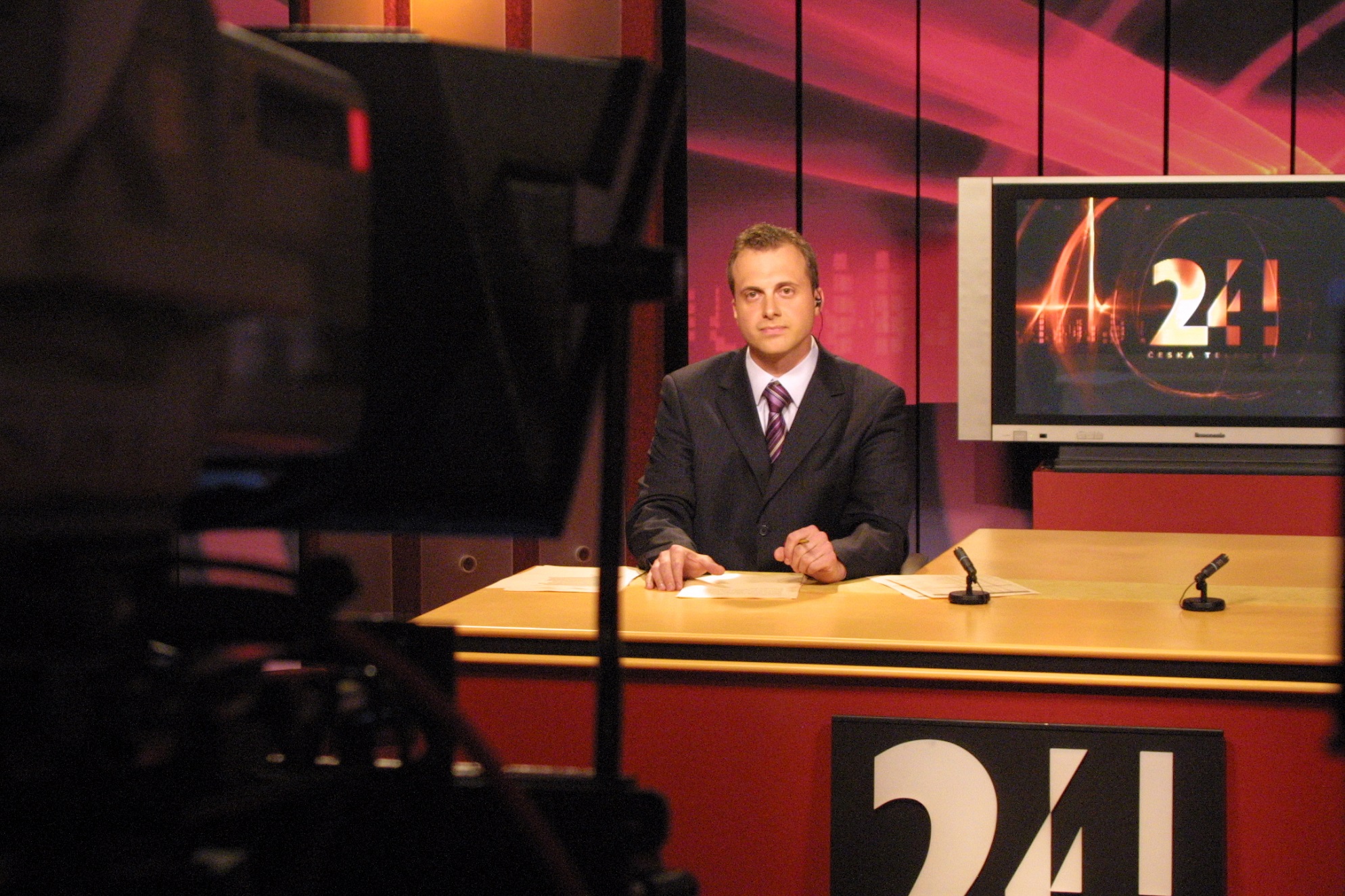 Zdroj: Česká televize – moderátor David Borek v prvním zpravodajském studiu ČT24