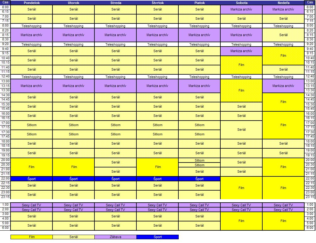 Programové schéma nové televize Dajto!, který patří stanici Markíza. Pro zvětšení klikněte myší.