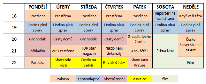S cílem oslabit páteční hegemonii České televize nasazuje TV Prima family „další poslední sérii“ Ano, šéfe!. Zdeněk Pohlreich odpovídal na dotaz, jak dlouho bude ještě pořad točit: „Mobl bych točit do nekonečna. Ale mám jenom jeden žaludek, tak uvidíme.“ Show Jana Krause zůstává kolem 22. hodiny.