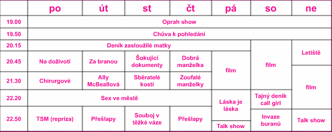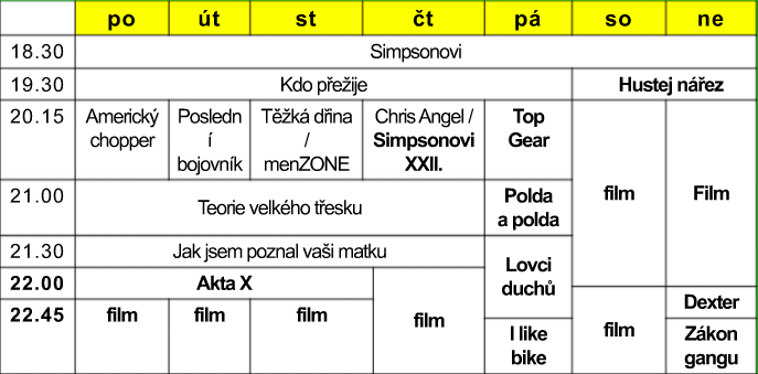 UDÁLOST TÝDNE – Dvě největší tuzemské komerční stanice představily tento týden svá programová schémata na následující podzim 2011. Hlavní program Primy nasadí osvědčené formáty doplněné několika novinkami, Cool bude experimentovat s mnoha novinkami, Love bude plná Sexu. TV Nova vsadí na jistotu, jedinou novinkou bude v podstatě Expozitura.