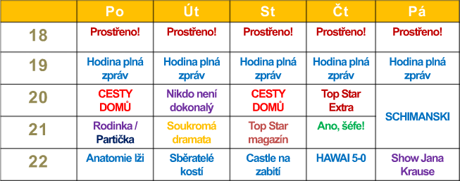 Stabilní formáty zůstávají, Prostřeno zvýší týdenní výhru ze 25 na 40 tisíc. Generální ředitel TV Prima Marek Singer uvedl, že si od této změny slibuje přilákání movitějších soutěžících. Hodina plná zpráv v 18:55 slibuje „ještě lepší aktuální pokrytí z terénu“ v Krimi zprávách, Partie bude přenášena ze zpravodajského studia a opět má být modernější. Poslední série „Ano, šéfe!“ se usídlí ve čtvrtek ve 21:20, necenzurovaná verze se objeví na internetu http://www.iprima.cz/anosefe, čeká nás navíc speciální díl z Chicaga. TV Prima už s kuchařem chystá další nové formáty. Jak už víte, Show Jana Krause zůstává, dostane novou znělku a stěhuje se do Divadla Archa.