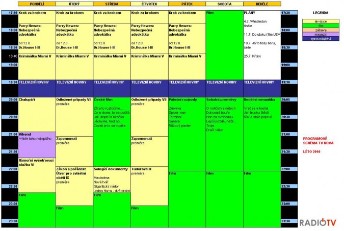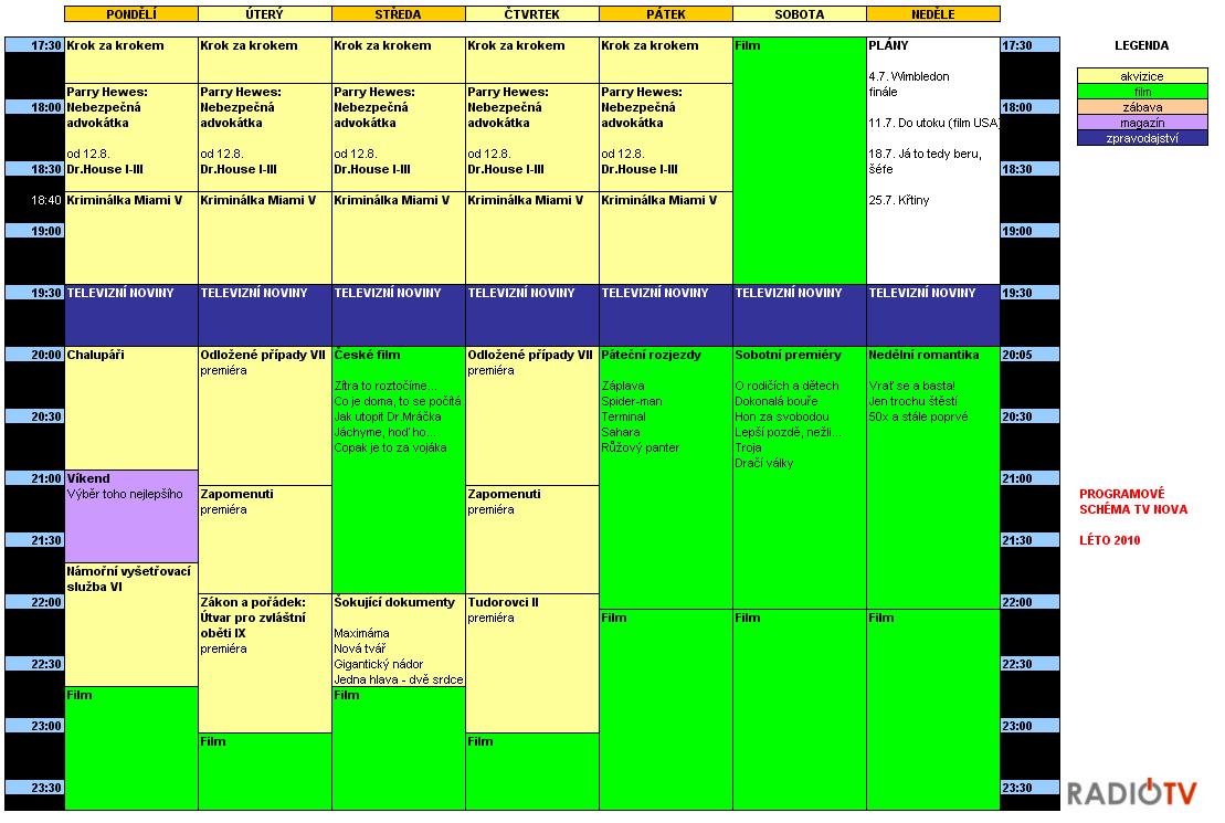 Programový plán televize Nova na léto 2010, pro zvětšení klikněte myší.
