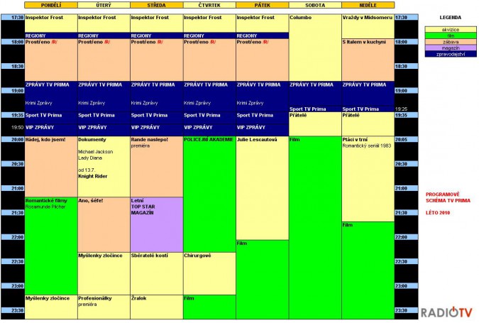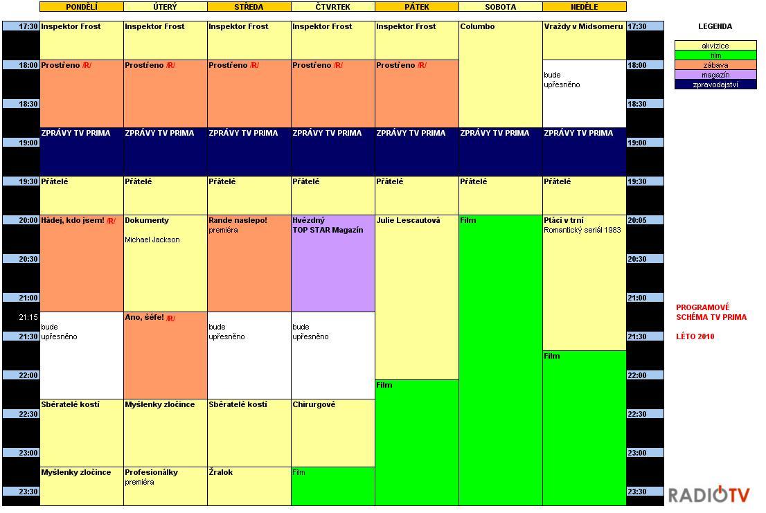 Programový plán televize Prima na léto 2010, pro zvětšení klikněte myší.