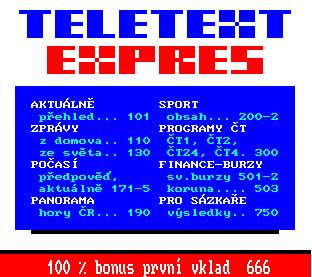 V roce 1988 vysílal teletext jen zkušebně, dnes nabízí servis na 3 programech. Pro zvětšení klikněte myší.