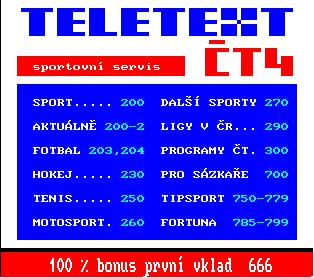 UKÁZKA TXT Z ROKU 1988 UVNITŘ – Dne 1. května 1988 bylo v Československu zahájeno teletextové vysílání. Na druhém programu Československé televize mohl omezený okruh diváků vlastnící televizor s dekodérem teletextu přijímat zkušební vysílání nového typu média. Možná si ještě vzpomínáte, že dříve se teletext vysílal i jako pořad s vybranými stránkami pro diváky nevlastníci televizor s možností příjmu teletextu.